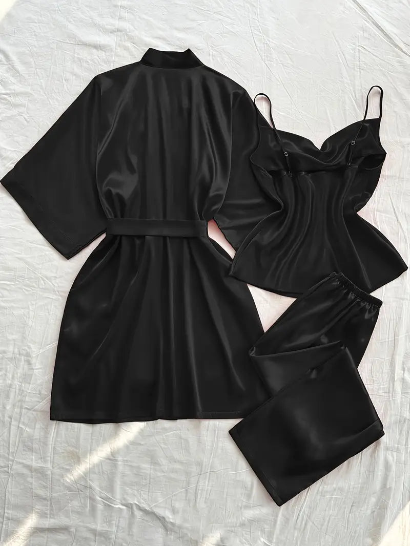 Long Sleeve Robe & Strapless Top, Long Pants, All-Season Comfort,Perfect for Casual or Intimate Moments, Comfortable Loungewear Pajama Set.