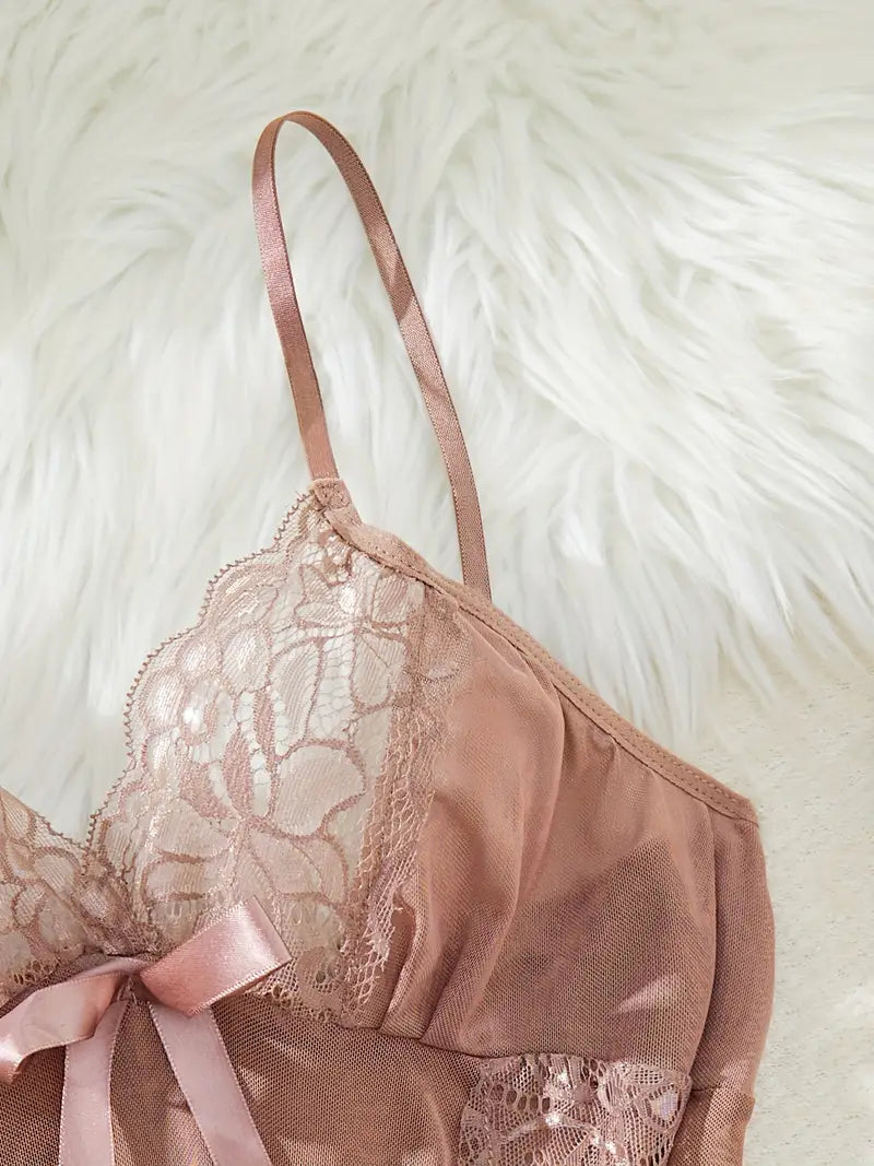 Summer Sweet Polyester Knit Fabric with Bow Detail, Solid Color Body Stocking Dress, 95% Polyester 5% Elastane, 132 gsm Lining, Comfortable Sleepwear